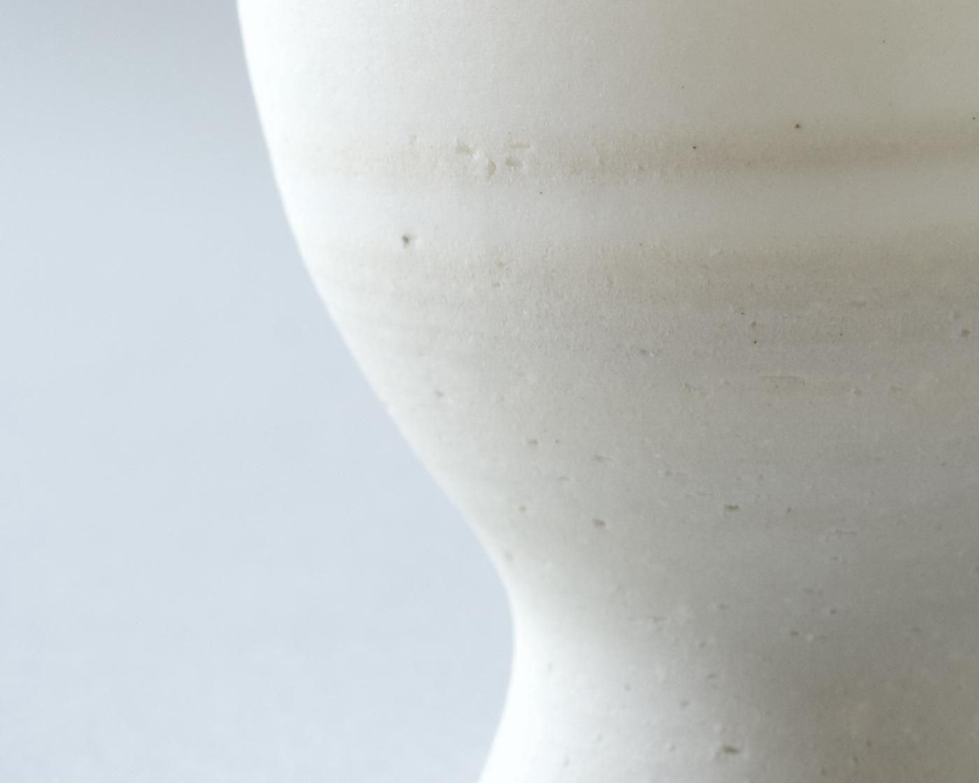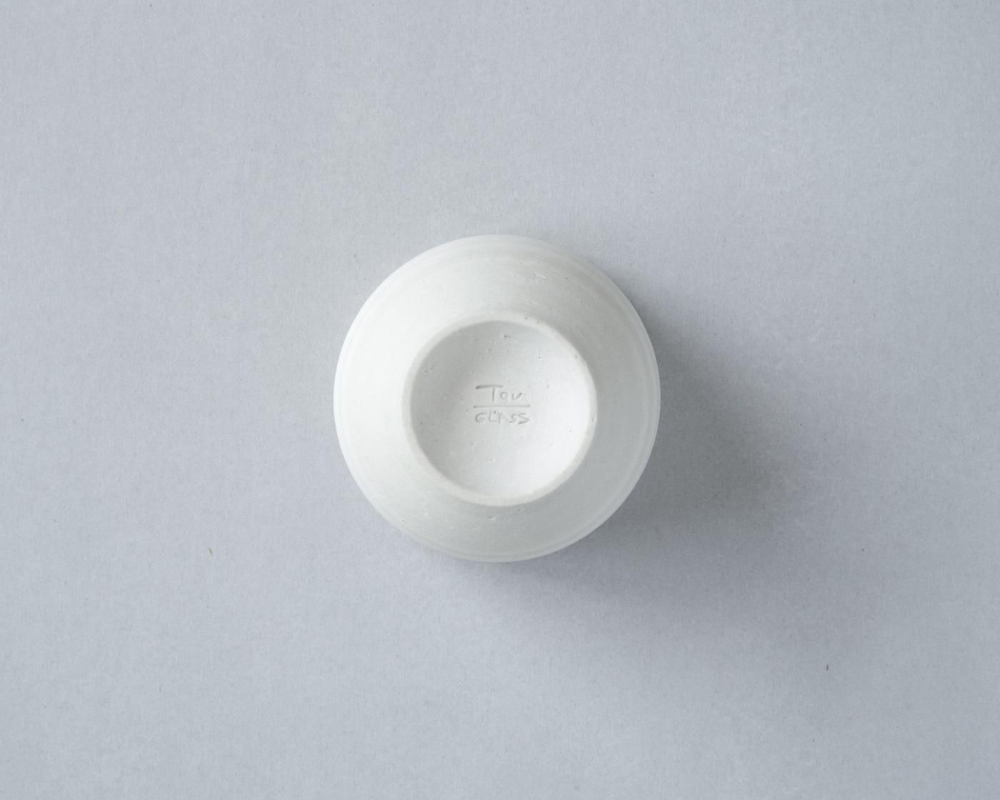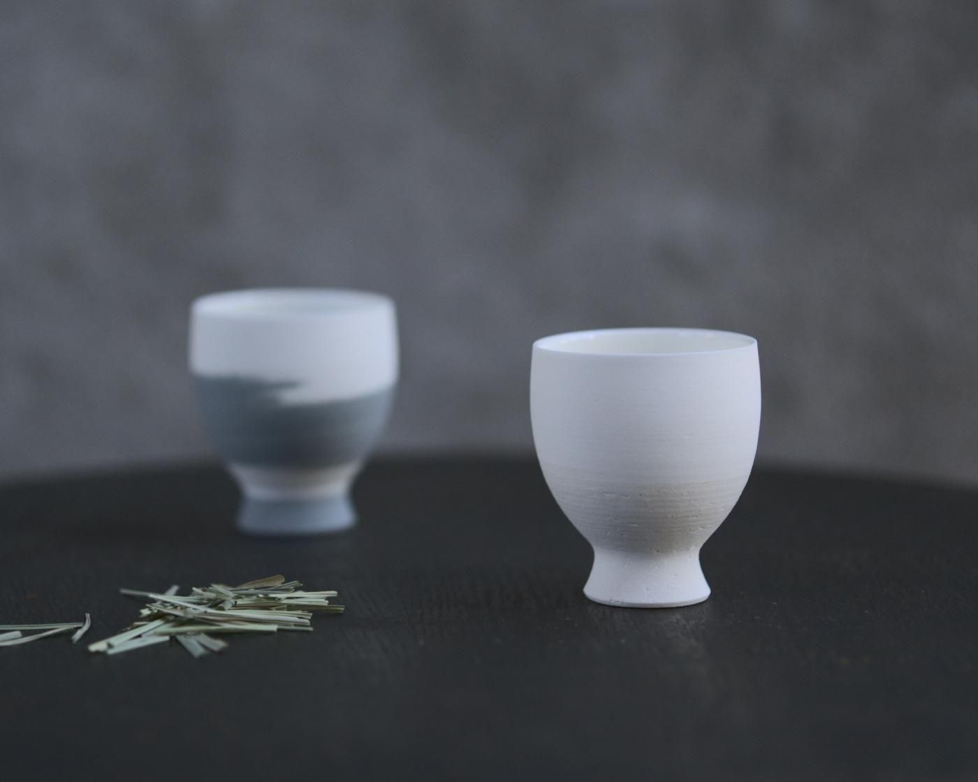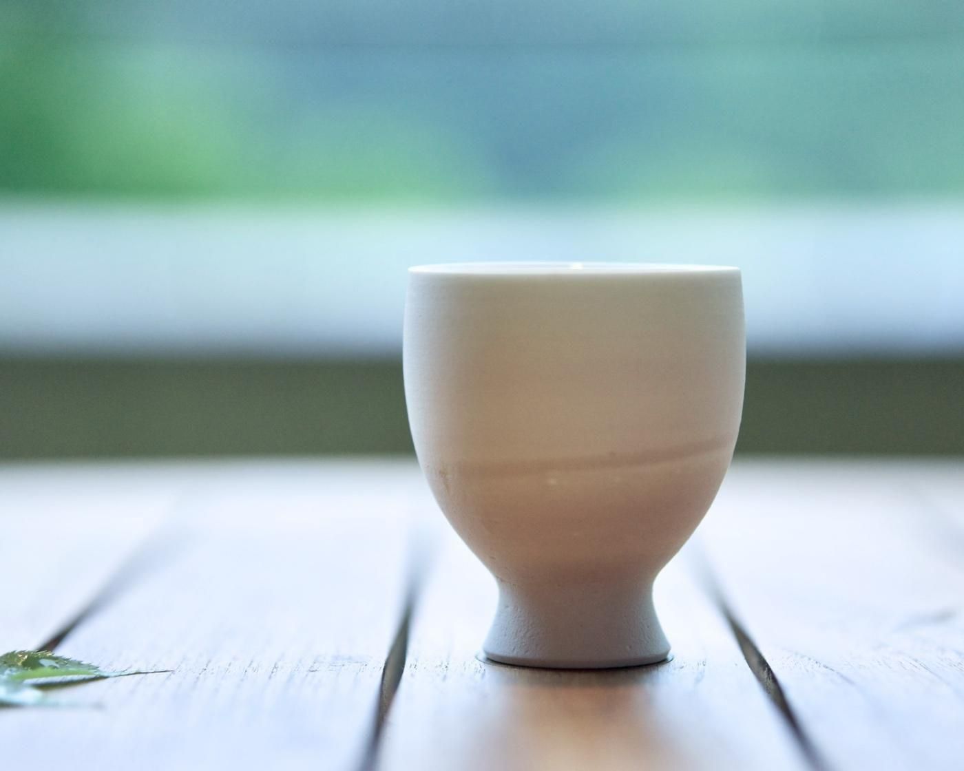 素材の白い信楽透器は、ざらりとした心地よい土の手触りと口当たりの良さが魅力。ガラス成分を含む透ける陶土は、月の光や灯りにかざしグラスが光りに透ける感覚もお愉しみいただけます。